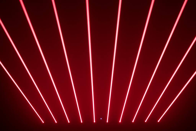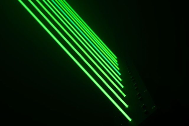 BeamBar mit 10 einzelnen Laserstrahlen mit besonders guter Strahlensichtbarkeit und DMX Ansteuerung. Geeignet für mittelgroße bis große Veranstaltungen und großartig für visuelle Bühneneffekte.