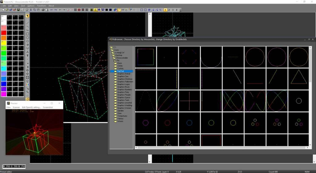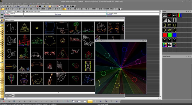 Vollumfängliche Lasershow- und Multimedia-Software mit LIVE und Timeline Steuerung. Schnelle und sehr effiziente Drag&Drop Programmierung. Der Import eigener Logos sowie das Erstellen eigener Texte ist möglich.