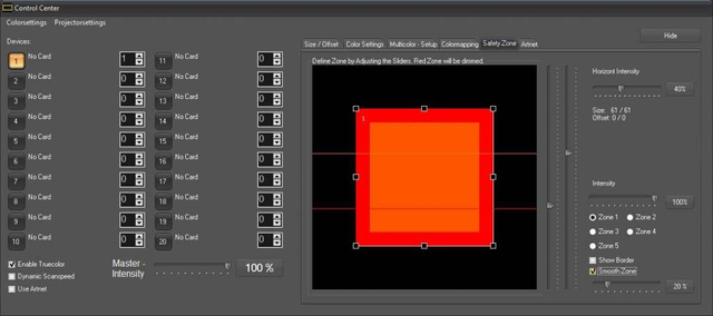 Showcontroller PLUS mit Multimedia Events, bis zu 20 DACs (16 individuelle Content-Kanäle), Realizzer, Capture und Depence2 Unterstützung und ILDA Datei-Export